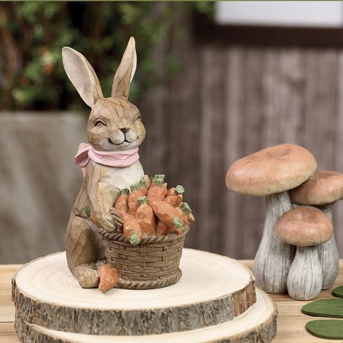 COELHO DECORATIVO DE RESONA COM CESWTA E CENOURAS 23CM