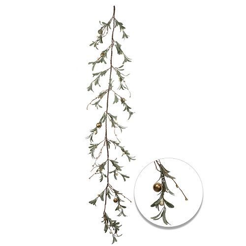 PENDENTE FOLHAGEM NATALINA COM BOLINHAS CHAMPAGNE 1.5M